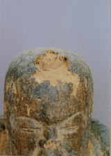 ●像の概要 虫食いによって皮一枚になってしまっている部分もあって、触ることもままならない状態であった。非常に大きな損傷を被っていた。緊急に処置が必要であった。 本像は16世紀の御像として市の文化財指定されており、古い信仰が地域の方々によって守り伝えられてきた非常に貴重な御像である。 修復を行い形状を補修していくと、男神像は意識的に隻眼の像として制作されていたことが分かった。 男神・女神はトチの木製で、猿神は杉材製である。 造形の違いからも猿神は後世に造り足された像と推定する。 ●修復基本方針 ・像の造像当初に形状を重視した修復を行った。 ・ノミ跡までをきちんと残す修復を行った。 ●修復作業 ・害虫を蒸散性の殺虫剤で駆除した。 ・腐朽した部分には合成樹脂を含浸し、強化した。 ・虫穴一つ一つから合成樹脂を皮下注入して彫刻表面を強 化した。 ・虫穴一つ一つに漆木屎を充填整形し、形状を補修した。 補修部分にのみ色を置いて補修部分を目立たないように した。 |