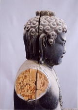 ・非常に手慣れた仏師が、定石通りの技法を用いて制作している。表面はクリーニングと膠による強化のみを行ったが、表情に凄みが出た気がする。