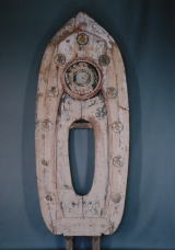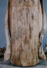 虫食孔に合成樹脂を注入し、彫刻表面を強化した。