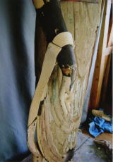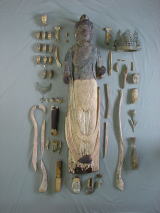 使用に耐えられると考えた後補部材は、出来るだけ使用 し、形状の補正の必要のあるものは切削補正した。(長す ぎる左腕は切り縮め、右足先は左足先に形状をそろえた 、持物の形状を補正した。)