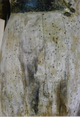合成樹脂を用いて、腐朽箇所を、含浸強化した。(彫刻表 面には濡れ色を出さないよう注意した)