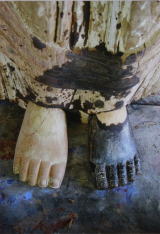 像下半身の表面彩色に剥落止めをした。