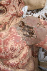 ・最後の修理は昭和年間に膠下地漆塗りが行われており 、これが剥離して像容を害していた。下の漆塗りに膠 下地が結着しにくく、剥離が起こっていた。この時は 表面の塗り直しのみが行われた。