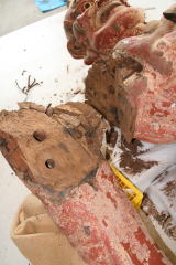 大きな欠失箇所は、ヒノキ材を彫出して、新しく補った 。
