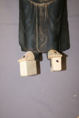 ・台座右足ホゾ穴の木片を取り外し、右足?、両足先を新補して安定させる。