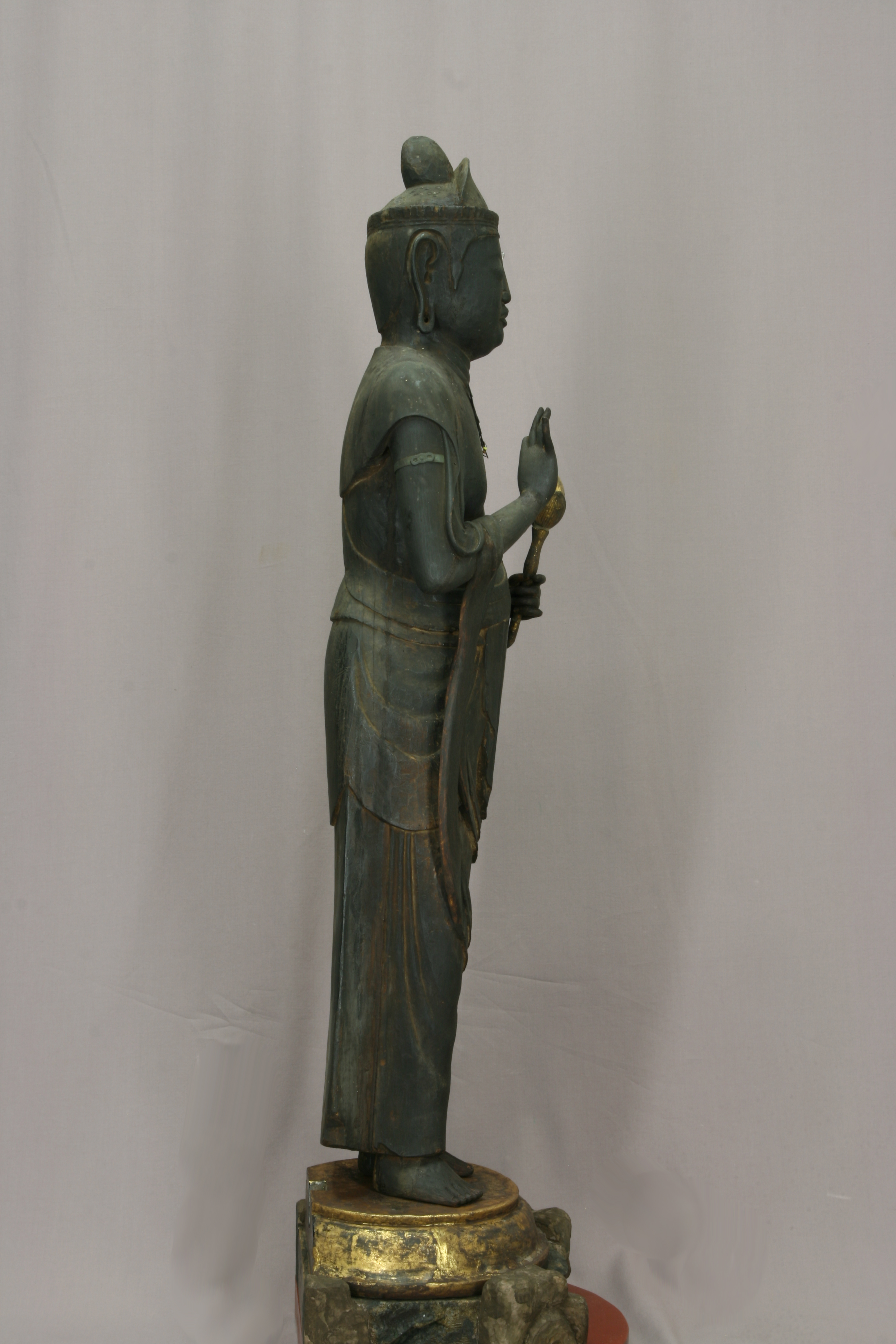 ・左に腰を少し捻っており、元々は阿弥陀三尊像の脇侍の観音像であったと推定される。