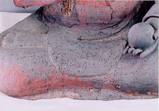HOME→仏像の修復について→修復工程例→虫喰い穴の補修
